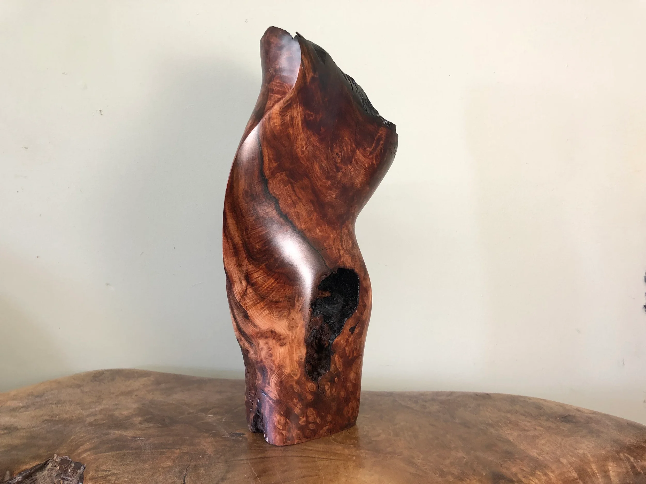 After finalizing the clay study, I sectioned the form and moved the profiles directly onto the lumber. By alternating the grain orientation for each segment, I created a continuous visual rhythm that flows through the entire piece.